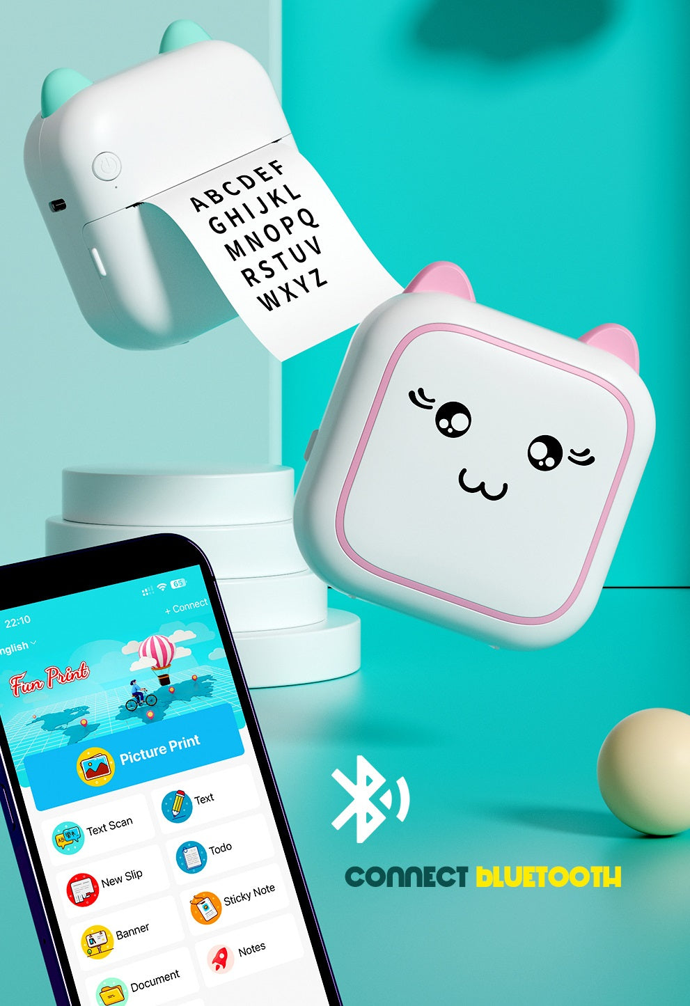 اتصال لاسلكي BLE4.0 BT، فقط قم بتنزيل التطبيق والاتصال، سهل وسريع، دقة 200 نقطة في البوصة، مما يضمن جودة طباعة واضحة.